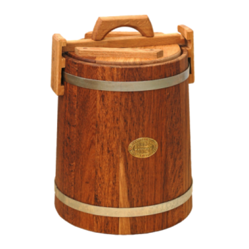 Выполненная из натуральных и экологиески чистых материалов кадка дубовая 15 л «Бонпос» (обручи из нерж. стали) подходит для засолки в больших количествах капусты, помидоров, огурцов и сала, а также ягод и фруктов, маринадов и медов. Плотная крышка, идущая в комплекте, не позволит воздуху проникнуть внутрь либо высыпаться или вылиться содержимому. По форме она напоминает трапециевидный полый цилиндр, охваченный для прочности обручами из нержавеющей стали, с нижним диаметром 30 см и верхним – в 27 см. Вес 15-литровой тары высотой в 41 см достигает в закрытом пустом состоянии 5,7 кг.