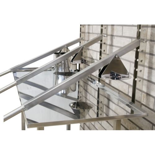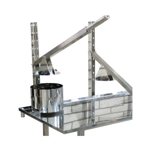 Стол имеет регулируемые шарнирные опоры. Стол выполнен из нержавеющей стали, которая не подвержена коррозии. В конструкцию дренажного стола установлена вместительная полка, в которую можно размещать аксессуары для сыроварения: лиры, сырные формы и т.д.