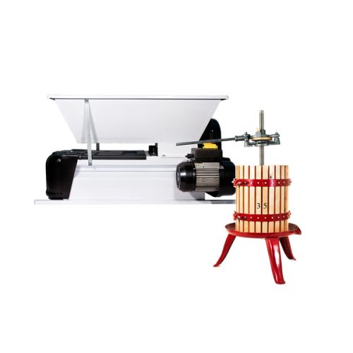 Набор для виноделия Виноградный-4 – комплект пищевого оборудования из ручного 46-литрового пресса и электродробилки с гребнеотделителем от итальянского производителя. Устройства используются для выжимки винограда и прочих ягод с целью домашнего получения сока. Все оборудование выполнено из прочных материалов, среди которых преобладают сталь, бук и оцинкованная сталь покрытая эмалью. Набор можно использовать не только в домашних условиях, также он подойдет для небольших винокурен.